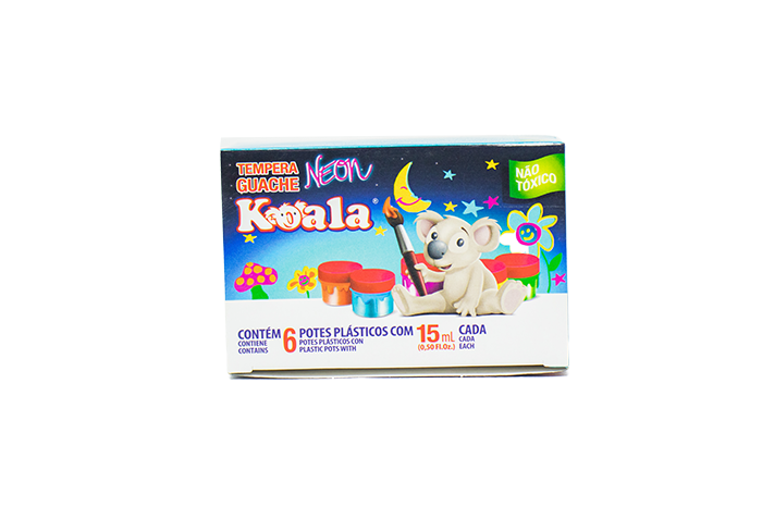 A tinta guache neon 06 cores 15ml Koala possui cores vibrantes que, além de ótima cobertura, são ideais para o desenvolvimento da percepção visual e criatividade das crianças. Com aroma agradável, pode ser utilizada com o auxílio de pincéis ou esponjas.